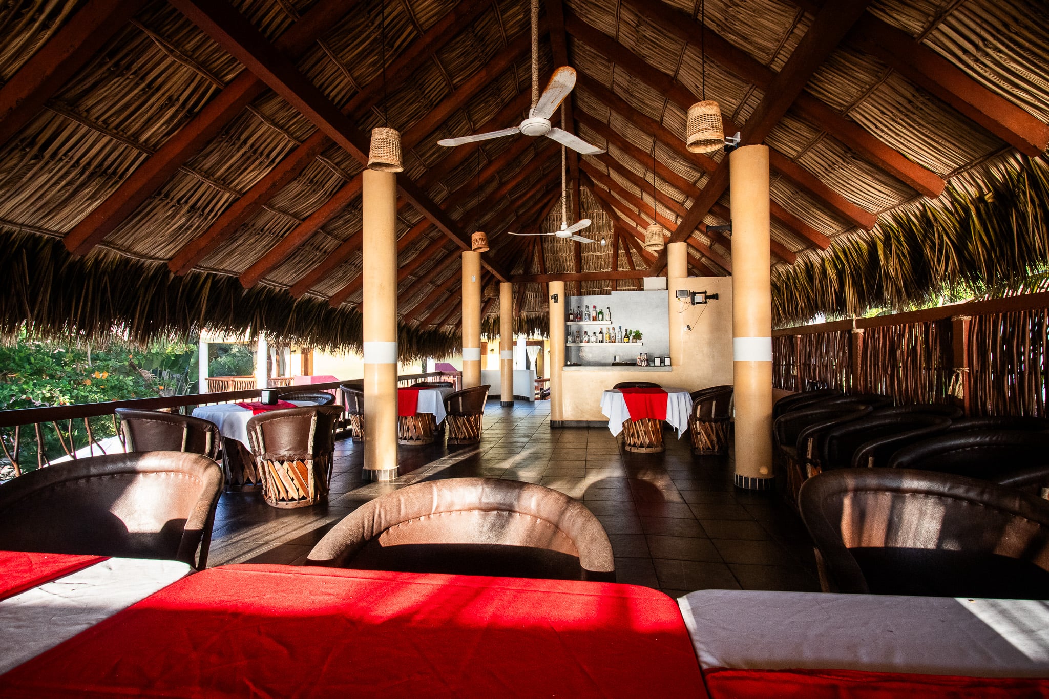 Dining & Gathering Spaces: An on-site restaurant is located just beside the pool, and above it, a spacious palapa-roofed terrace offers the perfect setting for large gatherings or additional dining space.